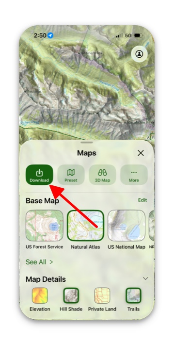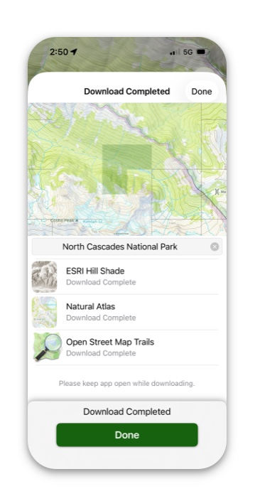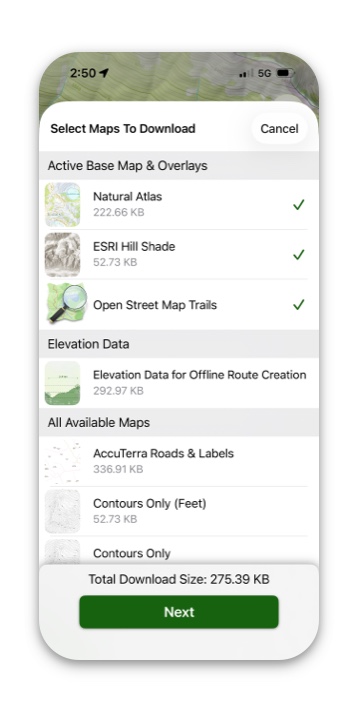 5. After selecting your chosen layers and tapping next, your map will download and you can view it on the map.