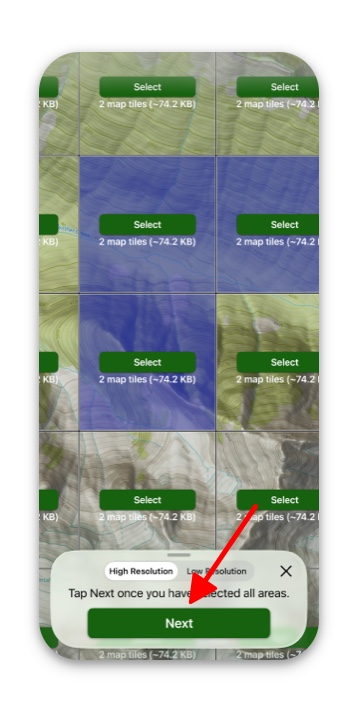 3. Then, select the tiles for the areas you want to download and tap Next.