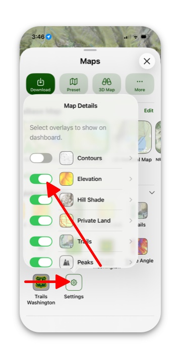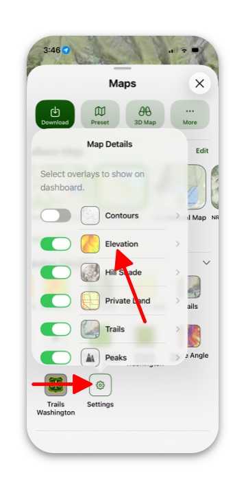 3. If not displayed there, then tap Settings under Map Details and toggle on Elevation.