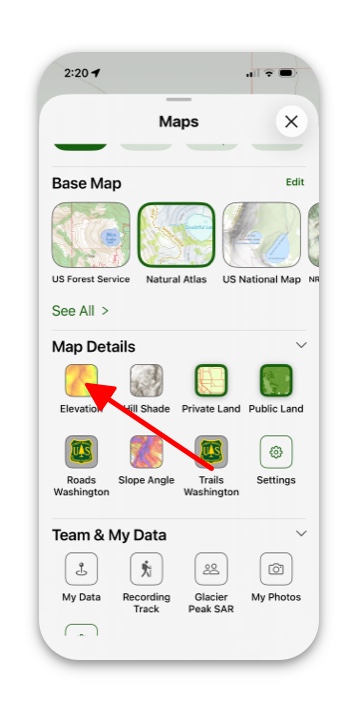 4. If you want to configure your colors then simply tap Settings under Map Details and then tap on Elevation.