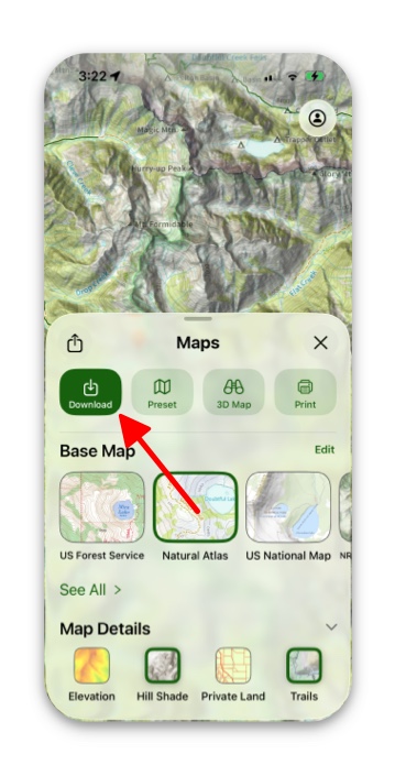 5. After selecting your chosen layers and tapping next, your map will download and you can view it on the map.