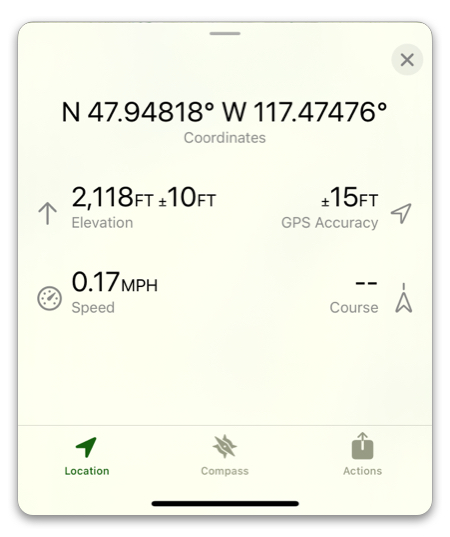 While on the trail, this tool is a quick way to check your coordinates, elevation, and to use the compass tool.