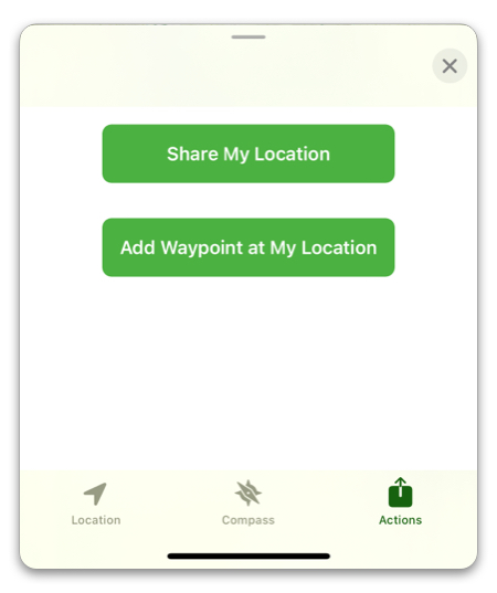 Tap on “Actions” to share your location, or add a waypoint to your location: